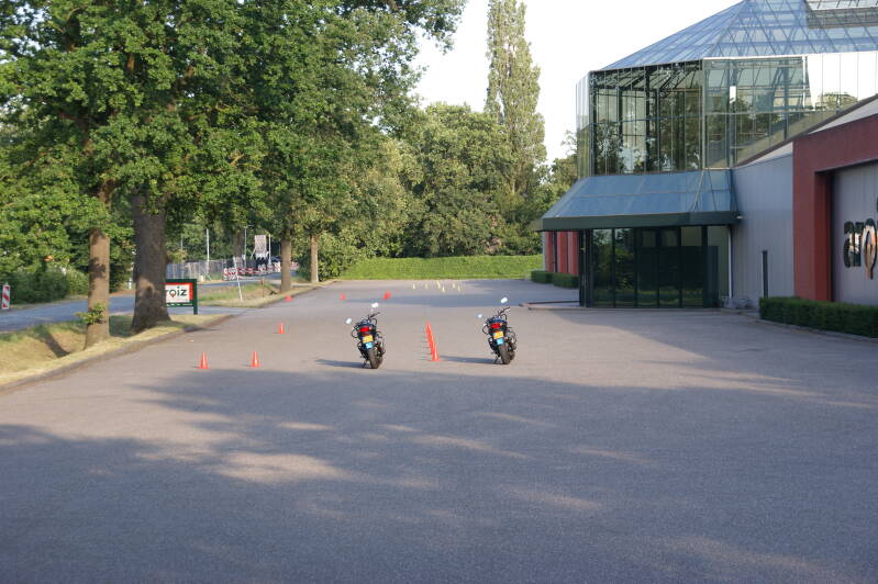 Om op een veilige manier een proefles te kunnen geven, en goed te kunnen oefenen voor je examen voertuigbeheersing beschikken wij over een eigen oefenterrein. Je bent bij ons dus niet rond aan het rijden op zoek naar een plek om goed te kunnen lessen. Ons oefenterrein heeft een lengte van ruim 190 meter zodat je ook goed uit de voeten kunt als het gaat over de snelle- en remoefeningen. In een beschermde omgeving kun je hier, op je eigen tempo, wennen aan de bediening en de motor zelf.